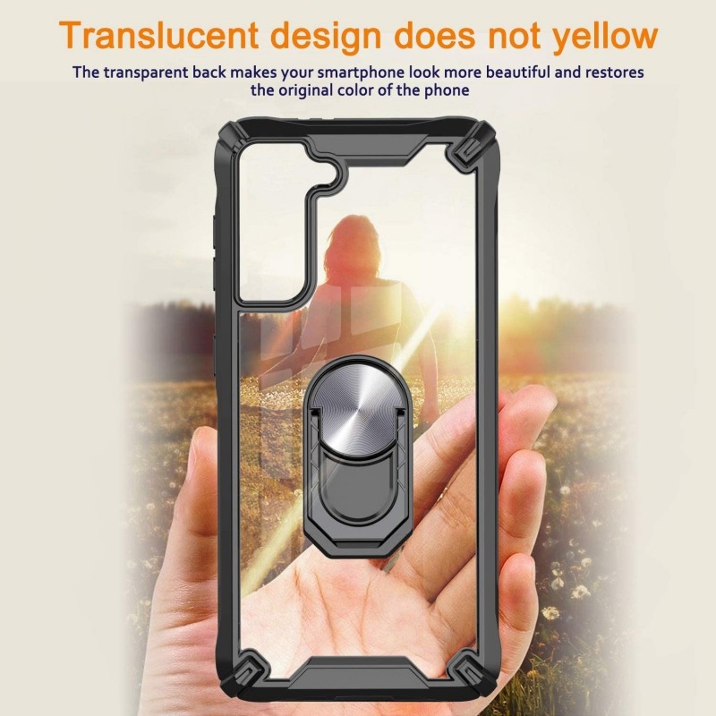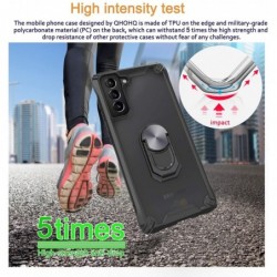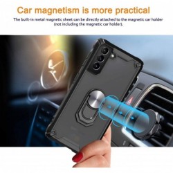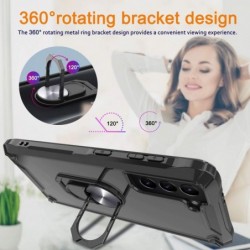 Funda de telèfon reforçada de doble capa amb suport d'anell magnètic giratori per Samsung Galaxy S21 Plus coberta de silicona a prova de cops. fet de silicona d'alta qualitat + plàstic dur + anell de Metall giratori 360. L'anell giratori de 360 ??graus ajustable ofereix un adherència addicional que redueix les possibilitats que el teu telèfon caigui. El suport multifuncional per al dit de l'anell també es pot utilitzar com un pràctic suport de visualització.