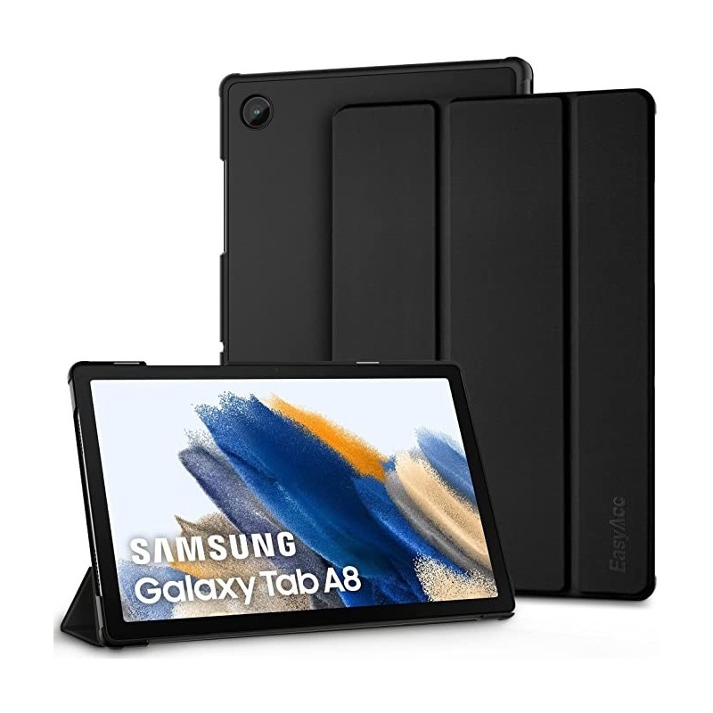 Funda Ultra Slim Compatible per Samsung Galaxy Tab A8 10.5 2021. Fet de cuir sintètic d'alta qualitat de cuir PU. Exterior de cuir sintetitzat premium i interior suau per evitar esgarrapades. Retallades perfectes per a la càmera, altaveus, suport i altres ports. Suport incorporat amb múltiples angles de visió. Disseny de cantonada reforçat per a una millor protecció.