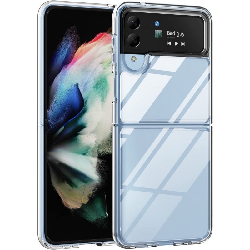 Funda per a Samsung Galaxy Z Flip 4 antichoque. Funda prima i transparent feta de material de PC d'alta qualitat, que és fort i dur, redueix les empremtes dactilars, evita la decoloració, i és a prova de cops. L'aparença de textura de vidre i cos prim permet que el telèfon mantingui l'aparença i el tacte originals. El buit precís està perfectament alineat amb tots els ports, càmeres i botons.