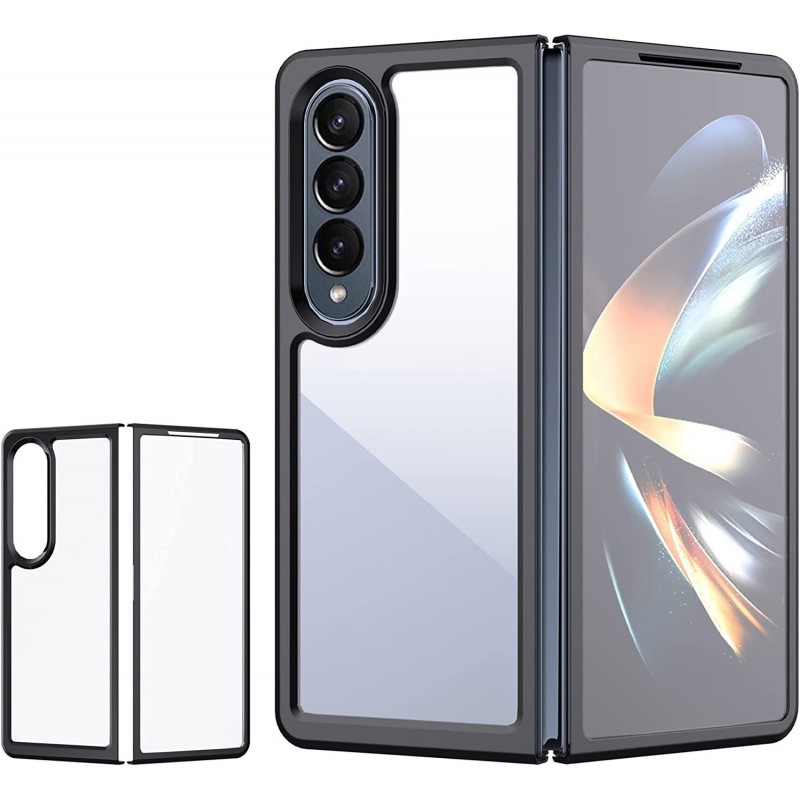 Funda per a Samsung Galaxy Z Fold 4 silicona. Funda prima, transparent amb vores en color negre feta de material de PC d'alta qualitat, que es lleuger i durador, redueix les empremtes dactilars, evita la decoloració, i és a prova de cops. El buit precís està perfectament alineat amb tots els ports, càmeres i botons.