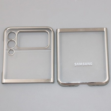 Carcassa original TPU per a Samsung Galaxy Z Flip 3 5G. Funda fabricada amb TPU d'alta qualitat transparent amb les vores cromades. Protegeix el telèfon sense augmentar el gruix. Protegeix el telèfon d'esgarrapades i cops.