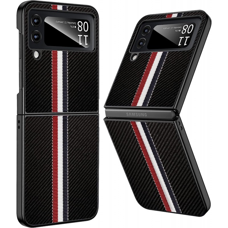 Funda per a Samsung Galaxy Z Flip 4 de plàstic dur amb disseny de ratlles. Fàcil accés a tots els ports i botons. Protegiu el telèfon de cops i ratllades sense augmentar ni el gruix ni la mida.