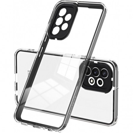 Funda per a Motorola Moto E13 anticops. Dues capes protegeixen la part posterior i tots els costats del telèfon contra esgarrinxades, cops, empremtes dactilars i pols. Les quatre cantonades encoixinades proporcionen més protecció contra caigudes. Funda protectora completa i 360 graus amb respatller de PC transparent. El marc elevat ajuda a protegir la pantalla i la càmera de les taules i altres superfícies.