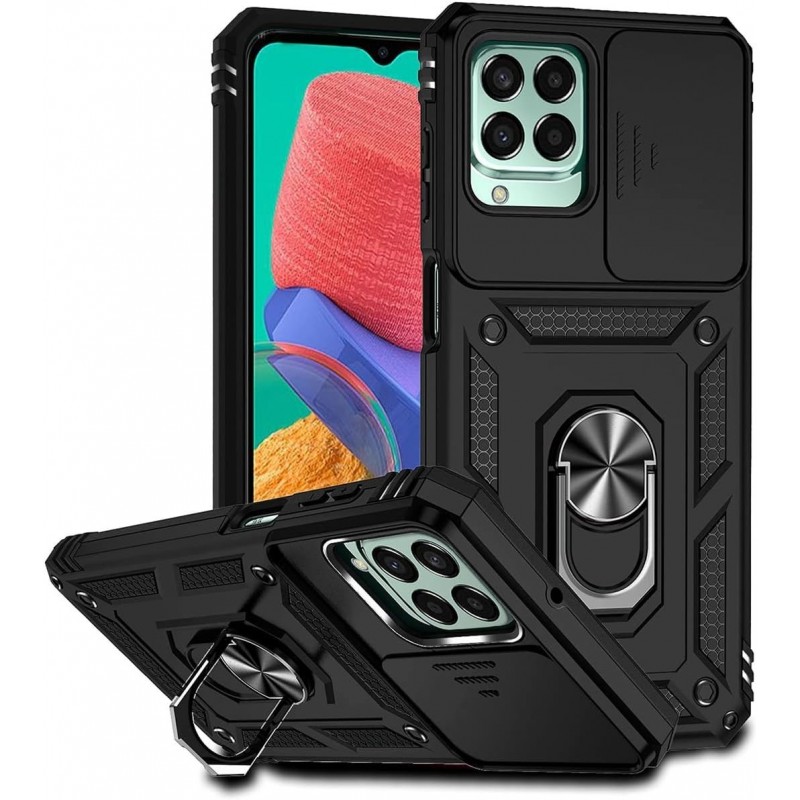 Funda per a Samsung Galaxy M33 5G reforçada amb coberta per a la càmera. Fabricada amb PC i TPU fort per a més protecció contra impactes. Amb aquesta funda protegeix el telèfon d'esgarrapades, cops, pols, xocs i abrasions. Rotació en dues dimensions: com un anell del dit per a una millor subjecció i com un suport per facilitar la visualització de vídeos.