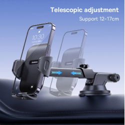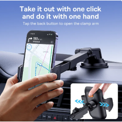 Suport per a cotxe baseus. Una ventosa extraforta amb coixinet de gel súper adherent s'adhereix fermament al tauler de control o a la majoria de les superfícies planes. Traieu fàcilment tirant del coixinet de succió sense deixar cap marca. El sistema d'alliberament funciona amb un sol botó que us permet bloquejar o alliberar el telèfon amb només un pas d'operació manual, molt fàcil d'utilitzar. El braç telescòpic es pot estendre a la longitud desitjada i pivotar cap amunt o cap avall per a una visualització òptima. L'articulació de bola flexible de 360º proporciona angles de visió infinits.