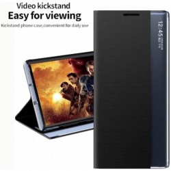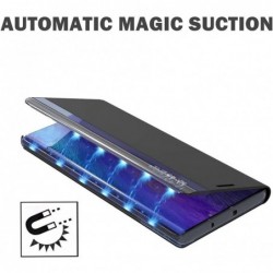 Funda flip de cuir vista intel·ligent per a Samsung Galaxy S22 Ultra 5G. Gràcies a la pantalla intel·ligent et permet veure el dia, l'hora i les notificacions sense obrir la tapa alhora que protegeix el telèfon de cops, esgarrapades i brutícia.