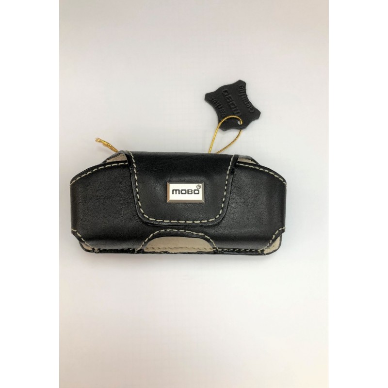 Mesures Alt 3cm x Ample 10cm. Funda universal horitzontal de la marca MOBO. Funda de pell genuïna per a un còmode transport. Incorpora una pinça que permeten la seva subjecció al cinturó o en la vora de l'pantalons. El disseny de la funda és elegant i discret, amb repunt en color blanc. El seu pràctic tancament magnètic li permetrà retirar i tornar a col·locar el telèfon a la funda amb comoditat i rapidesa.