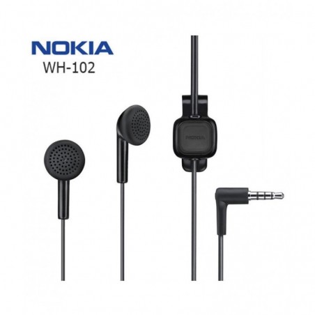 Auricular Original Nokia WH102 connexió 3,5 mm. L'auricular estèreo Nokia WH102 li ofereix un dispositiu "mans lliures" pràctic i portàtil en totes les circunstancias.Compacto i funcional, aquest auricular li ofereix una excel·lent qualitat d'escolta i inclou un pràctic botó de resposta i finalització. Permet també escoltar música, ràdio FM amb so estéreo.Compatible amb Nokia 5630 XpressMusic, 5730 XpressMusic, 5800 XpressMusic, 6303 classic, 6303i classic, C1-00, C1-01, C1-02, C2-00, C2-01, C3 , C5, C5-03, C6, C6-01, C7, E5, E52, E55, E6, E63, E7, E72, E73 Mode, E75, N78, N79, N8, N81, N82, N85 i compatibles