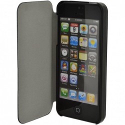 Funda iPhone 5 Stand. Funda de color negre amb tapa d'obertura lateral i fina coberta interior que ofereix una excel·lent subjecció. Incorpora funció de suport per poder veure còmodament pel·lícules, vídeos de YouTube i també per realitzar videoconferències còmodament des del seu escriptori sense ni tan sols subjectar el terminal.