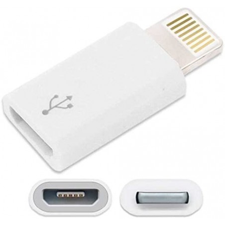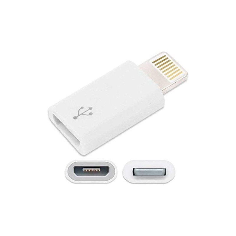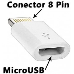 Adaptador de microUSB a Lightning 8 pins. - Aquest adaptador li permet connectar accessori microUSB en el seu dispositiu amb connector lightning. - Admet sincronització i càrrega Compatible amb: iPhone 5 iPod Touch 5 iPod Nano 7 iPad Mini iPad 4 (Pantalla Retina)