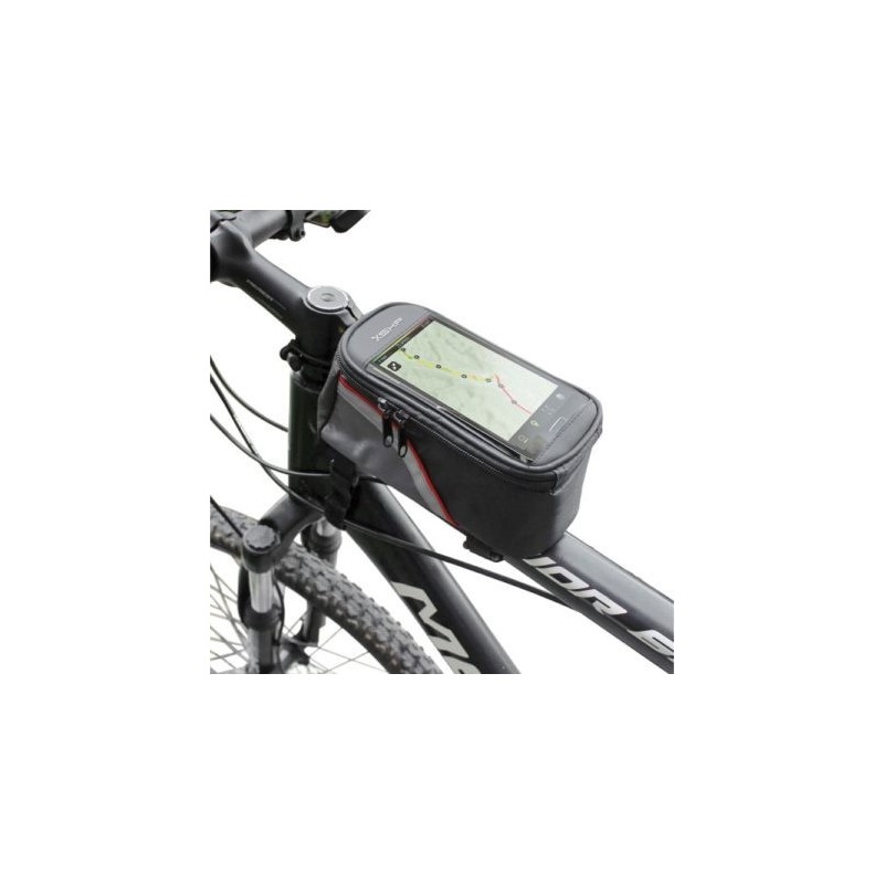 DIMENSIONS 145x80x12 mm.Funda universal XL 5'5 polzades, flexible i impermeable que s'instal·la en el quadre de la bicicleta per portar el teu GPS, smartphone o PDA, protegint-los de la pluja, fang i salpicaduras.Cierre per cremallera perquè l'equip quedi ben segur. A més, la part frontal és transparent, de manera que la pantalla es veu amb total claridad.Disponible en color negre amb motius grisos i vermells