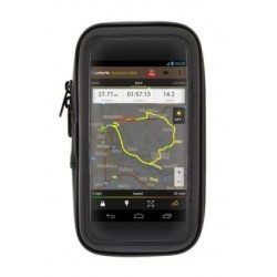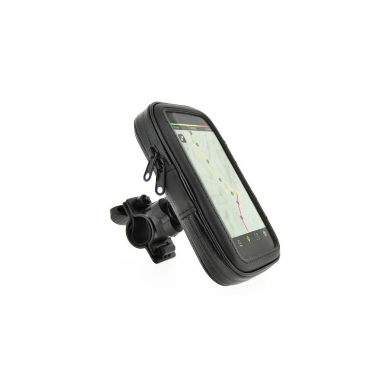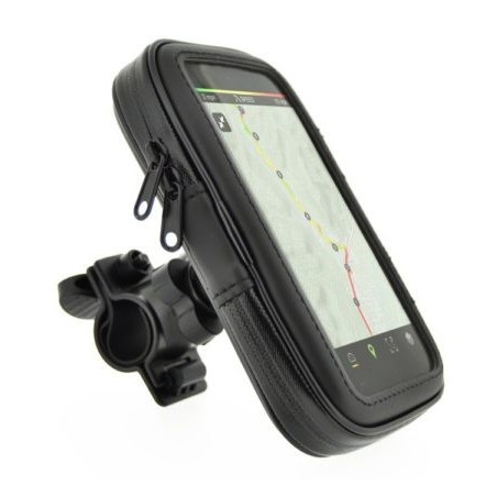 DIMENSIONS 145x80x12 mm. Funda universal XL 5'5 polzades, estructura semirígida que ofereix gran protecció i impermeabilitat que s'instal·la al manillar de la bicicleta per portar el teu GPS, Smartphone o PDA, protegint-los de la pluja, fang i esquitxades. Tancament per cremallera perquè l'equip quedi ben subjecte. A més, la part frontal és transparent, de manera que la pantalla es veu amb total claredat. Inclou la brida de fixació, que evita que la funda es separi i caigui.