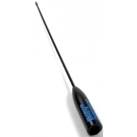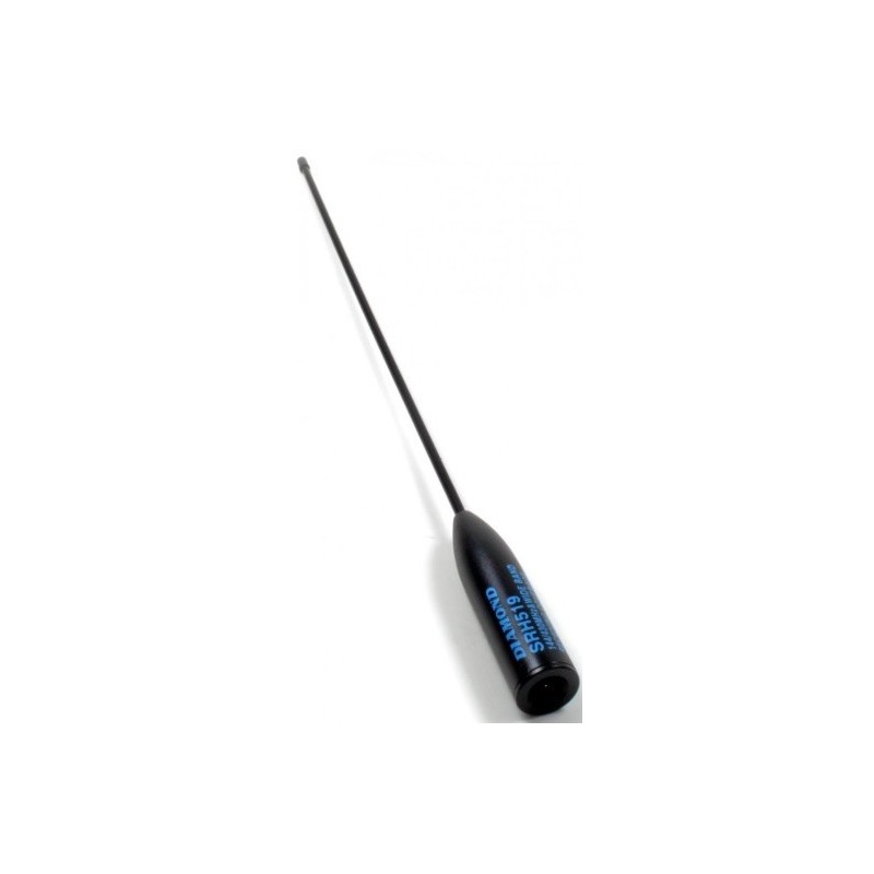 Antena Diamond SRH519. Antena flexible doble banda portàtil per a walkie. Freqüències TX: 144 / 430MHz. Freqüències RX: 120/150/300/450/800 MHz. Longitud 21cm. Pes 9gr. Potència màx 10W. Connector SMA.