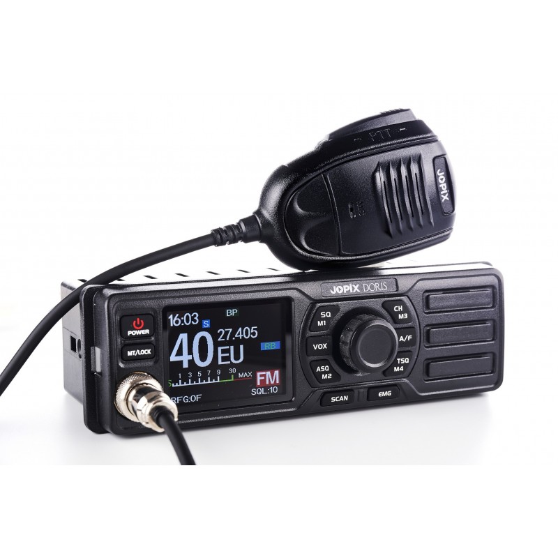 La Jopix Doris és una emissora de CB (banda ciutadana) multinorma Europea FM/AM de 40 canals amb àmplia pantalla a color i altaveu frontal, de mida ultra-reduïda amb tan sols 6 cm de fons, apta per col·locar-la en pràcticament qualsevol buit del vehicle. S´adapta fàcilment a qualsevol lloc d´un cotxe, camió o tractor. Múltiples funcions com la de doble escolta, que permet monitoritzar 2 canals alhora, la funció SCAN, amb diferents modes d'escaneig, la funció VOX per a la transmissió activada per veu, la funció Talk Back, que permet escoltar-se un mateix pel altaveu durant la transmissió, entre altres característiques i funcions destacades.Potència de transmissió: 4 W (FM/AM), Alimentació: 12/24 V.C.D.