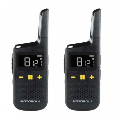 Motorola XT185 parella de Walkie Talkies sense llicència amb auriculars mans-lliures inclosos, mida molt reduïda, elegants i discrets, resistent a la intempèrie IP54, el pot portar amb vostè a qualsevol lloc. La funció d'aparellament simplificat us permet connectar-vos a altres ràdios de forma simple i començar a parlar immediatament. Fins a 24 hores de durada de la bateria d'ions de liti amb la comoditat de la base de càrrega individual. Sensibilitat en 3 nivells, ideals per evitar comunicacions inoportunes (com per exemple, mentre practiques una activitat esportiva per algun soroll) Inclòs: Base carregadora , Clip cinturó, Bateria d'ió de liti i Auricular mans lliures