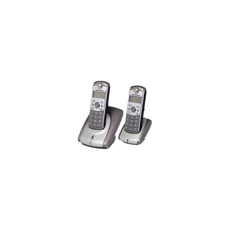 Telèfon sense fil DUO (dues terminals). Compta amb una pantalla LCD amb retroil·luminació blau, abast de 300 metres en espais oberts, autonomia de 100 hores en espera i 10 en crida i altaveu en l'auricular.