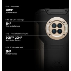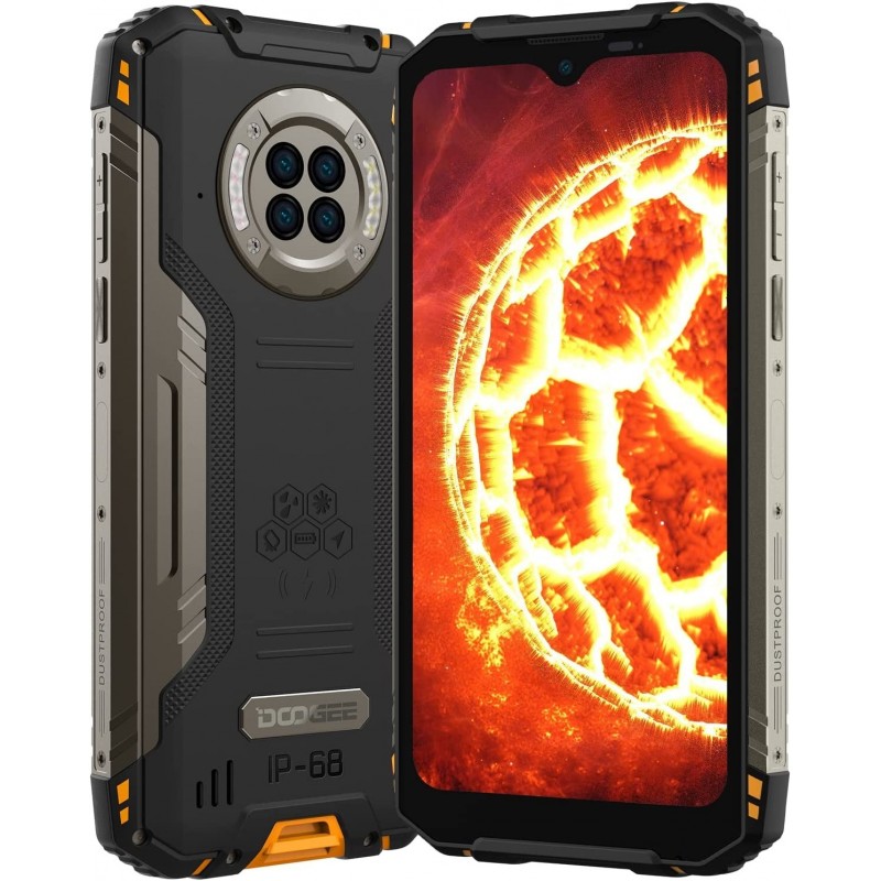 Telèfon rugeritzat Doogee S96 GT. Equip octa-core amb el processador Mediatek Helio G95 que compta amb 8GB de RAM i 256GB de ROM. Gran bateria de 6.350 mAh i suport per a càrrega ràpida de 24W. Equipat amb NFC i 4 sistemes de navegació per satèl·lit (GPS, Galileu, Glonass, Beidou). Càmera quàdruple de 48MP + 20MP + 8MP + 2MP. Càmera frontal de 32MP. Compta amb càmera de Visió Nocturna de 20MP, està equipat amb 4 llums infraroges que permeten fer fotos fins a 15m de distància en una foscor absoluta. Pantalla de 6,22". És extremament resistent gràcies al vidre de Corning Gorilla. Les seves dures credencials inclouen les certificacions MIL-STE-810, IP68 i IP69K. Robust, impermeable i a prova de cops.