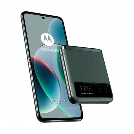 EQUIP NOU, PRECINTAT, GARANTIA 3 ANYS. El Motorola Razr 40 té una pantalla interna AMOLED LTPO de 6.9 polzades amb resolució FHD+ i taxa de refresc de 144Hz i una pantalla cover externa AMOLED de 1.5 polzades. Està potenciat per un processador Snapdragon 7 Gen 1 amb 8GB de RAM i 256GB d'emmagatzematge intern. La càmera dual està composta per un sensor principal de 64MP i una càmera ultrawide de 13MP, mentre que la càmera selfie és de 32MP. S'alimenta d'una bateria de 4200 mAh amb suport per a càrrega ràpida i sense fils, i completa les característiques amb parlants stereo, lector d'empremtes lateral, disseny repel·lent a l'aigua i Android 13.