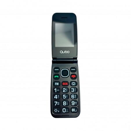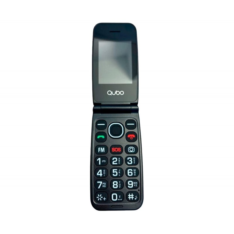 Mòbil bàsic / sènior Qubo NEONW-BK 4G tipus petxina, pantalla TFT LCD 2,4" QVGA, 48MB RAM + 128MB ROM, emmagatzematge ampliable amb targeta T-Flash fins a 32 MB, dual SIM, ràdio FM, connector jack 3,5 mm, reproductor d'àudio i vídeo, gravador de vídeo, bluetooth 5.0, botó SOS configurable, càmera de 0,3 MP i bateria de 800 mAh amb una autonomia de fins a 100 hores en espera i fins a 3,5 hores en conversa i connector USB-C.