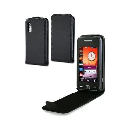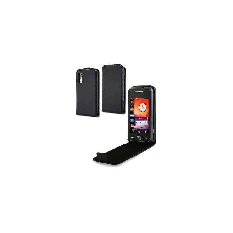 Funda fina con tapa negra para Samsung S5230. Esta funda elegante y robusta protegerá tu reproductor Samsung S5230. Protege eficazmente tu dispositivo de arañazos, golpes y caídas. Esta funda tiene un cierre aimente, muy conveniente. Además, el teléfono se mantiene de forma segura mediante un sistema exitoso.
