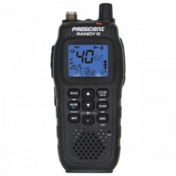 El President Randy III es un Walkie talkie de banda ciudadana CB con múltiples y avanzadas funciones, dispone de una gran pantalla LCD multifunción, 40 canales en AM y FM, squelch manual y automático, incluye tonos CTCSS y DCS, cargador y batería recargable de litio, escáner, filtros ANL, NB, HI-CUT, 7 colores diferentes de retro-iluminación de pantalla, roger beep, doble escucha.