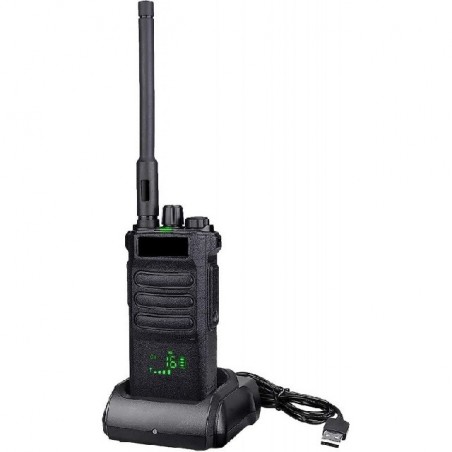 Walkie RT86. Cuenta con 16 canales y una batería de alta capacidad de 2.600mAh que le proporcionan hasta más de 5 días de batería en espera. Permite llamadas de larga distancia y alarma de emergencia para poder pedir ayuda en una situación de peligro. Esta equipado con una pantalla de 1,4" y tiene un diseño de cuerpo robusto perfecto para soportar golpes y caídas. Completa sus características con función de linterna, adecuado para aventuras nocturnas, situaciones emergentes o entornos de trabajo oscuros.