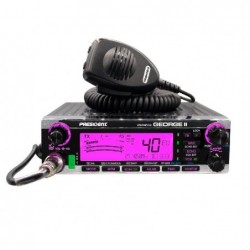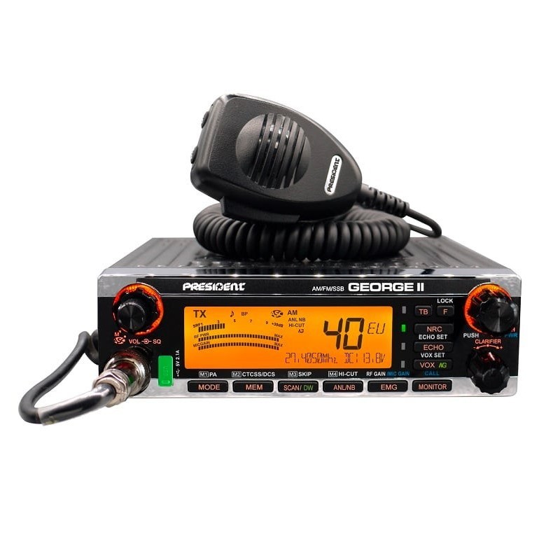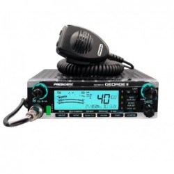 La PRESIDENT GEORGE II es una emisora de radio de banda ciudadana CB 27 Mhz con AM, FM y banda lateral Upper Side Band de prestaciones avanzadas para los usuarios más exigentes. La emisora PRESIDENT GEORGE II quiere representar un nuevo hito en la facilidad de uso con 7 colores diferentes de pantalla, ganancia de antena y micrófono., medidor de ROE, doble escucha y 4 canales de memoria.
