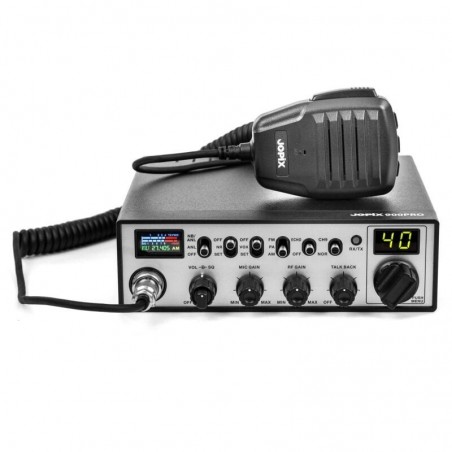 La Jopix 900PRO es una emisora móvil de CB (banda ciudadana, banda 27Mhz) de aspecto clásico y tamaño compacto, con controles sencillos de uso intuitivo, con características destacadas tales como: el sistema avanzado de reducción de ruido, su display LCD de alta resolución con frecuencímetro y SWR Meter con alerta de niveles de ROE excesivo, El Squelch automático (ASQ), función Vox y alimentación multivoltaje 12V y 24V DC, entre otras.