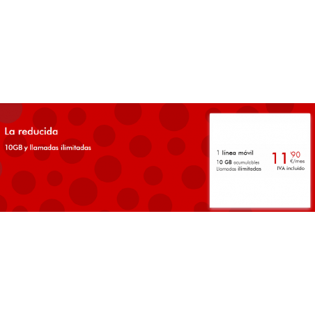 Tarifa móvil con llamadas ilimitadas y 10GB acumulables. Si se te acaban los datos, navegarás a velocidad reducida sin coste adicional. ¡Contrata ya tu tarifa! Nosotros nos encargamos de todos los trámites.