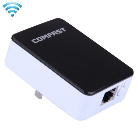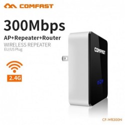 Repetidor wifi Comfast CF-WR300N 3 en 1. Amplificador de señal inalámbrica: AP, repetidor y router. La velocidad del transporte del puede alcanzar hasta 300Mbps. Antena incorporada, cobertura ilimitada. Compatible con todas las marcas de routers en el mercado y tarjeta inalámbrica.